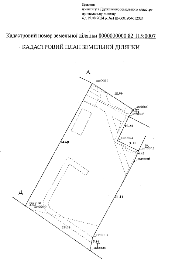 Кадастровий план ділянки на вул. Катерини Білокур, 6Д у витягу з ДЗК