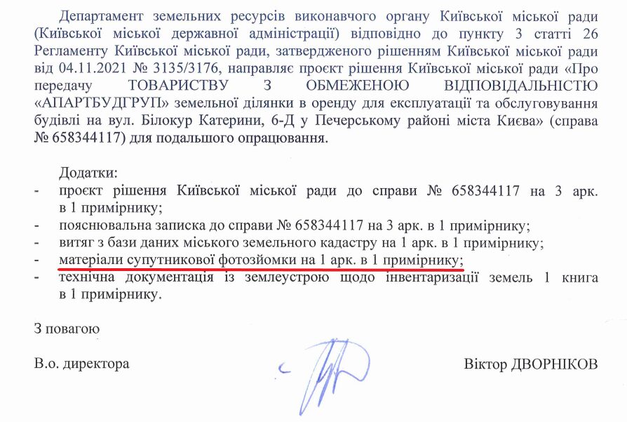 Регламент Київради встановлює, що до проєкту рішення з питань земельних відносин додаються матеріали аерофотозйомки та фотофіксація фактичного стану використання відповідної земельної ділянки (ст. 26). Проте в додатках є лише супутникова фотозйомка.