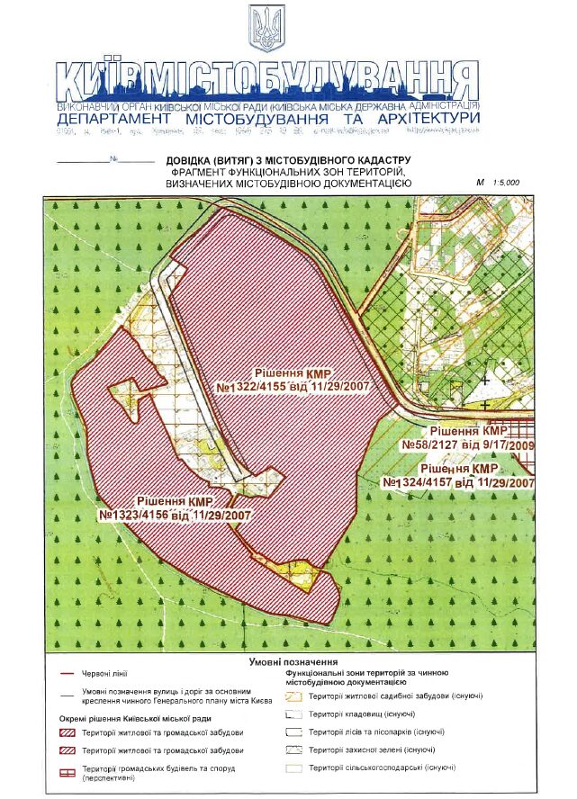 In all five cases, the explanatory notes to the draft decisions contained false information, claiming that in 2007 the Kyiv City Council amended the Master Plan and reclassified the relevant land as being designated for “residential and public development.”