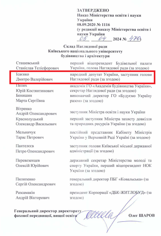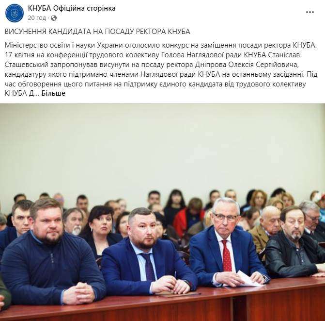 On April 18, former deputy head of the Office of the President Oleksiy Dniprov was nominated for the position of rector at the Kyiv University of Construction and Architecture.