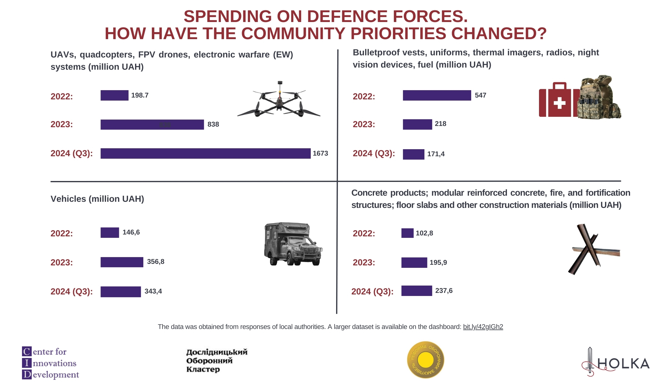 Last year, Ukrainian communities provided the most support to the defense forces through the purchase of drones, quadcopters, and electronic warfare (EW) systems. In the first three quarters of the year alone, 262 communities spent 1.6 billion UAH on these items. When including expenditures on vehicles, body armor, and fortifications, the total amount rises to 2.4 billion UAH. Over the three years of full-scale war, community support for the defense forces has been steadily increasing.