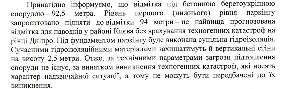 However, according to Kyivgenplan, the water table is already above 94 meters. Therefore, the risk of flooding remains.