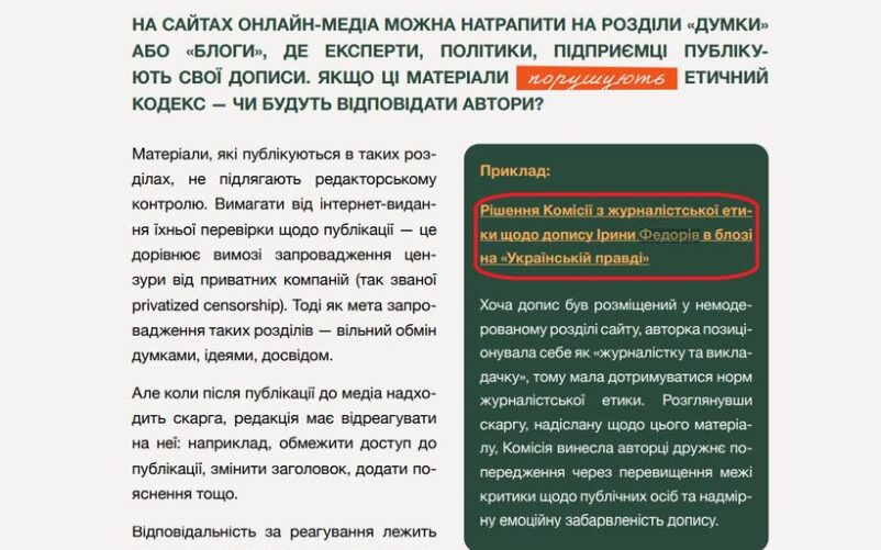 Уривок з “Практикуму”, який створила Комісія журналістської етики
