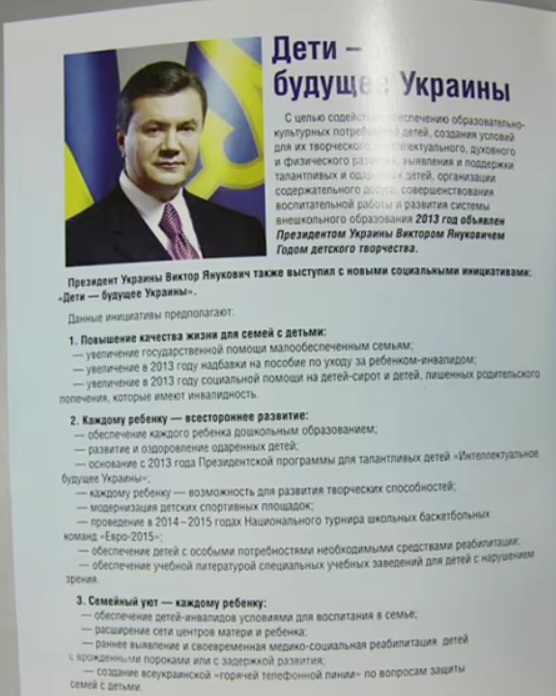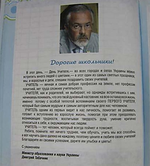 Влітку за кілька місяців до початку Революції Гідності у 2013 році в Криму для школярів виготовили “Днєвнік кримского школьника” з Віктором Януковичем на першому розвороті. Це був по суті “совковий” продукт пропаганди, в якій медіа на той час лише політичну рекламу “Партії регіонів”. У цьому щоденнику була передмова тогочасного міністра освіти і науки Дмитра Табачника, який пізніше отримає заочний вирок за державну зраду.